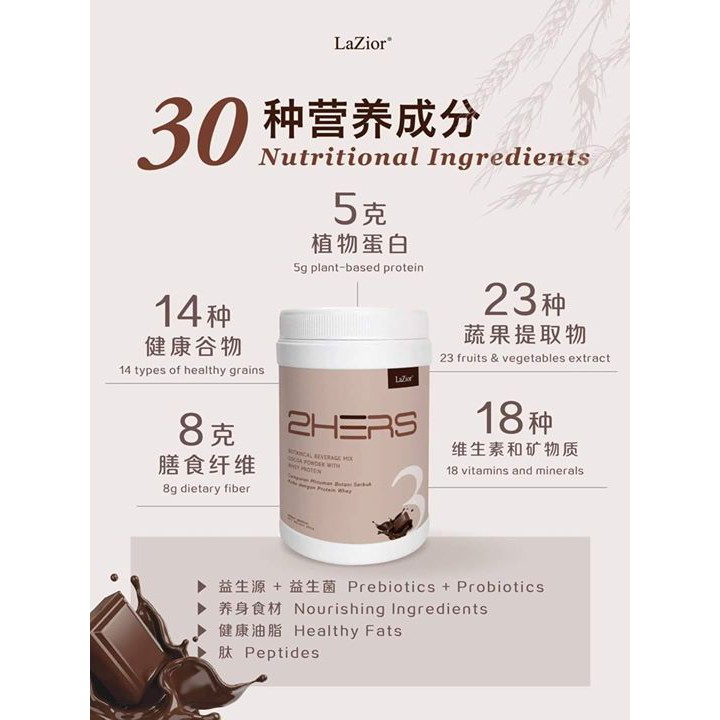 Lazior 2HERS 3 chocolate replacement meal can provide a healthy proportion of carbohydrates protein and beneficial fats helping to maintain an ideal weight. 2HERS3 Cocoa Nutritional Replacement Drink Lazior. LaZior lazior 2HERS3 2hers3 假一赔十 不割码送礼物Meal Replacement HALAL Cocoa 可可代餐 正品清货亏本卖.